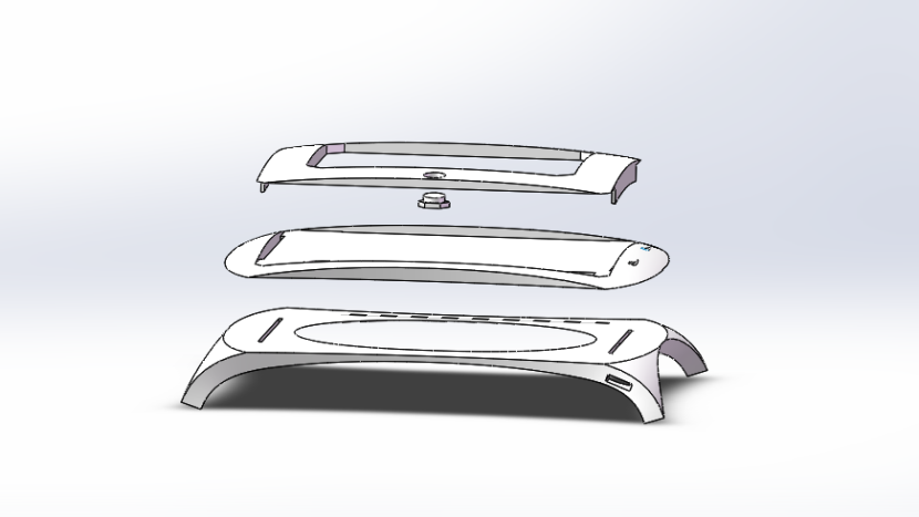 由于曲面造型金屬加工有較高的難度與工藝成本,我們的曲面手寫板不考慮用金屬加工來做.考慮到3D打印的靈活性,曲面手寫板主要采用3D打印工藝,將整個手寫板分為三塊進(jìn)行分別打印,依靠摩擦進(jìn)行緊固.