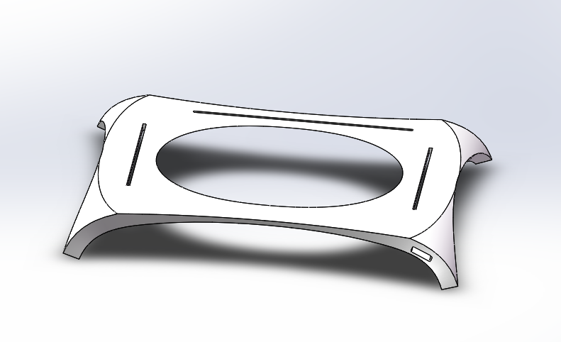 曲面手寫板我們最想得到的效果是其空間立體感,即外觀上的視覺沖擊.初步設(shè)想是一個弧面(圖示)整體外觀有了便設(shè)計(jì)細(xì)節(jié),首先想到的是筆的放置問題,考慮到該手寫板的弧形外觀會造成底部會有比較大的空間,正好可以放置手寫筆同時不會影響到外觀.
