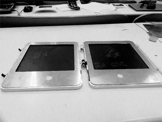 本次項(xiàng)目里面的折疊式手寫板主要是由我設(shè)計(jì)并加工的,因此這里主要談?wù)郫B手寫板的設(shè)計(jì)亮點(diǎn).