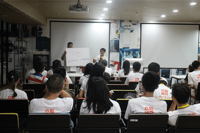 ▲.如火如荼的大賽現(xiàn)場-各個小組成員在進行反復討論和作品制作