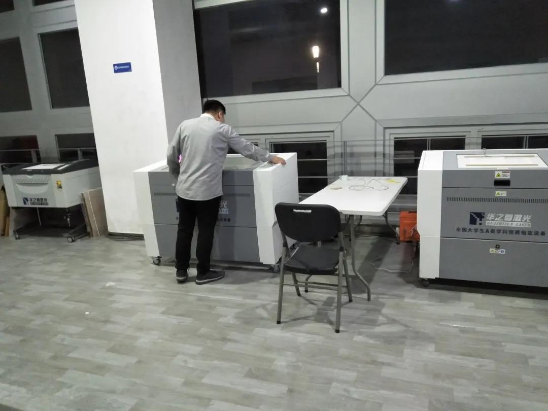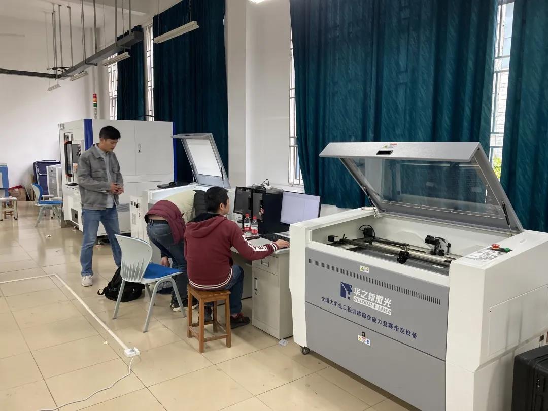 3月25晚,華之尊工程師挑燈夜戰(zhàn)至凌晨?jī)牲c(diǎn)。在現(xiàn)場(chǎng)對(duì)設(shè)備進(jìn)行最后的調(diào)試。晚上11點(diǎn),同濟(jì)大學(xué)工程實(shí)踐中心的領(lǐng)導(dǎo)還在巡視各個(gè)賽場(chǎng),對(duì)于我們?nèi)A之尊的工程師現(xiàn)場(chǎng)的表現(xiàn)和華之尊的設(shè)備給予高度的肯定,同時(shí)也對(duì)設(shè)備在大賽中表現(xiàn)也充滿了期待。國(guó)賽利器~高品質(zhì)的華之尊激光助力選手們優(yōu)異成績(jī)的取得!為大賽保駕護(hù)航。