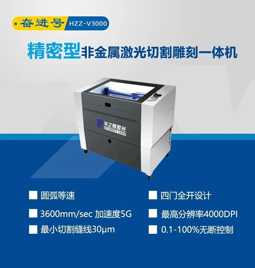 奮進號HZZ-V3000是華之尊激光悉心研制具有國際水準的名牌設備,是先行者系列機型基礎(chǔ)上的一次升華。以全電腦化操控,人性化設計,彌補了國產(chǎn)激光設備對切割的不足。切割(半切割/全切割工藝),3600mm/s長期無故障運行,是當前中小功率激光雕刻切割機中的至尊選擇!